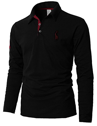 STTLZMC Polo Manica Lunga da Uomo Tennis T-Shirt Gentiluomo Ricamo Tops,Nero,Medium