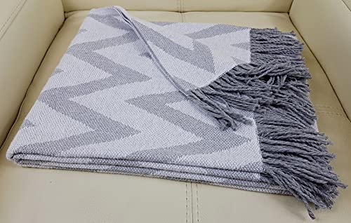 STTS International Coperta in Cotone con Frange, Plaid, 100% Cotone, 140 x 180 cm, Palma, Colore:Grigio-Bianco
