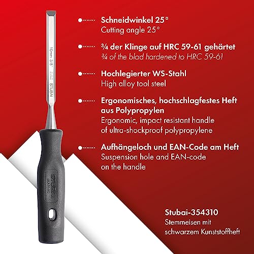 Stubai 354310 Scalpello per Legno, Impugnatura in PP Nera, 10 mm