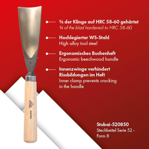 Stubai 520850 Sgorbia per Scultori con Manico, Modello 8, 50 mm