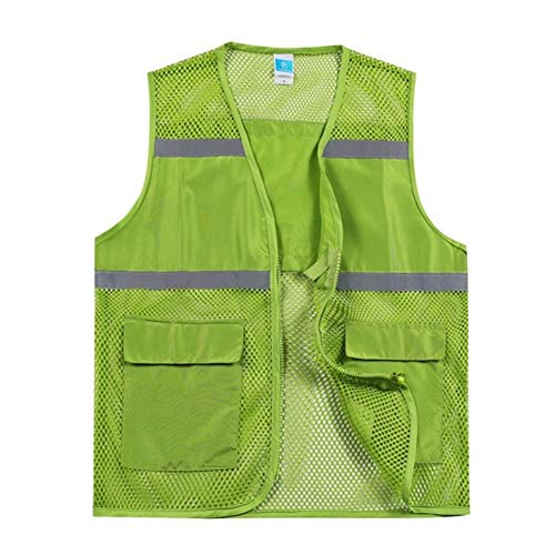 SK Studio Adulto Giubbotto di Sicurezza del Giubbotto Catarifrangente, Gilet in Rete Altamente Traspirante,Riflettente Giubbino Auto Moto Bici Run Sicurezza Verde X-Large
