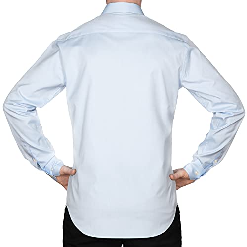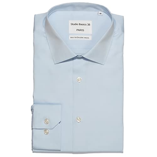 Studio Basics 38 - Camicia da Uomo Oxford Azzurre in Puro Cotone Doppio Ritorto Manica Lunghe vestibilità Slim Fit - No Stiro