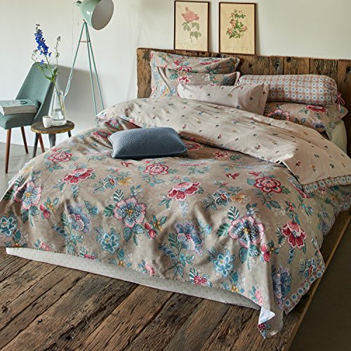 Pip Studio, Set di biancheria da letto Berry Bird, color cachi, double face, 2 pezzi in 100% cotone spigato spazzolato, a fiori, Cotone, cachi, 135 x 200 cm + 80 x 80 cm