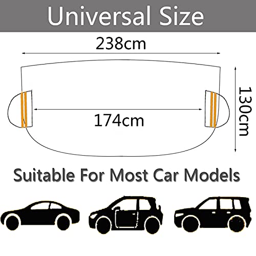 【DIMENSIONE UNIVERSALE】: Gli ombrelloni del finestrino anteriore dell'auto sono 216x125 cm. È meglio per i parabrezza delle auto più piccole, la protezione solare per l'auto si adatta bene alla maggior parte dei veicoli con i parabrezza. (Misura prima di acquistare per ottenere la misura migliore per il parabrezza della tua auto)