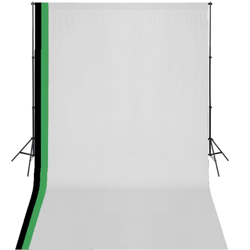 Un sistema di sfondi è un pezzo indispensabile di attrezzatura fotografica professionale. Il nostro kit per studio fotografico contiene 3 fondali in cotone 100% di alta qualità e un telaio pieghevole e regolabile in una comodo borsa per il trasporto sul posto. Il sistema può essere combinato con uno dei nostri sfondi in diversi colori. Il sistema flessibile di sfondi è facile da configurare e può essere utilizzato per ritratti, fotografia pubblicitaria o fotografie di prodotti. La consegna include 2 supporti, 2 segmenti della traversa, 3 sfondi e 1 borsa per il trasporto. Colore: Nero Materiale: Telaio alluminio + fondale in cotone 100% Altezza dei supporti: 75-210 cm (regolabile) Larghezza della traversa (da supporto a supporto): 155-300 cm (regolabile) Compresi 3 sfondi colorati: Verde/nero/bianco Dimensioni dello sfondo: 3 x 5 m (L x L) Dimensioni della borsa per il trasporto: 85 x 15 x 15 cm (L x P x A) La consegna include: 2 supporti 2 Segmenti della traversa 3 Sfondi 1 Borsa per