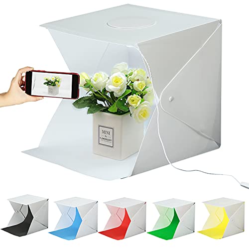 Studio Fotografico Portatile, Tenda Studio 24x23x22cm Fotografico Portatile Fotografia Luce Tenda 40 LED Scatola Pieghevole Mini Light Box, Con 6 Sfondi, Adatto per Piccoli Oggetti