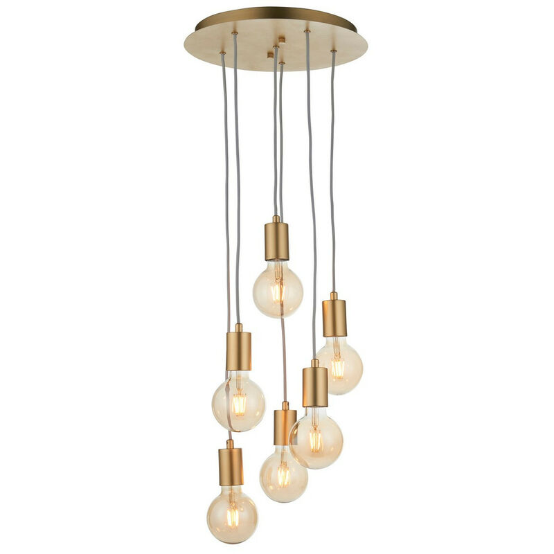 Endon Studio Lampada da soffitto a sospensione a piastra, vernice oro tenue | Finitura: vernice oro morbido | Materiale: acciaio | Classificazione IP: IP20 | Altezza minima: 30 cm | Altezza massima: 82,2 cm | Diametro: 34 cm | Tipo di lampada: E27 | N. di lampade: 6 | Lampadina inclusa: No | Dimmerabile: Sì - Lampadina dimmerabile richiesta | Peso: 1,94 | Potenza (max): 10W LED