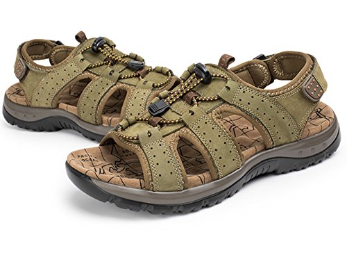 SK Studio Uomo Sandali in Pelle Sportivi Trekking Sandalo Arrampicata Estivi All'aperto Chiusure in Velcro Piaggia Sandalo Verde42 EU