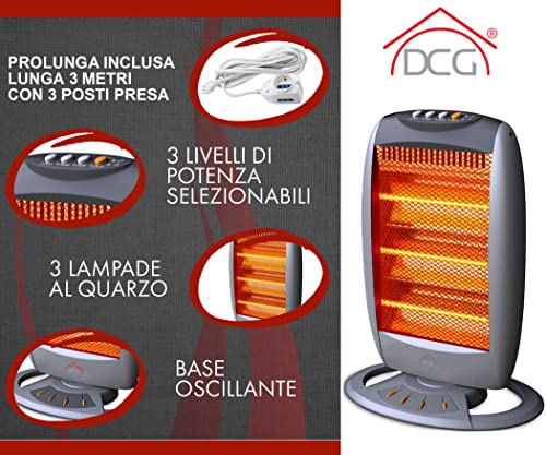 Stufa Alogena Basso Consumo Energetico Rotante con Prolunga da 3 Metri -Stufa Elettrica Potente 1200W -Stufetta Quarzo, Stufetta Alogena, Stufetta Economica, Stufa Elettrica Basso Consumo per Camera