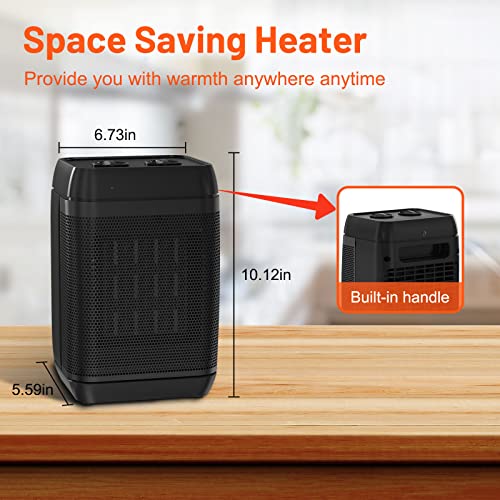 【Compatto e Portatile】 I stufetta elettrica da bagno basso consumo misurano 10.12 x 6.73 x 5,59 pollici, pesano 2,68 libbre e il design della maniglia nascosta sul retro è facile da trasportare, il scaldino elettrico bagno con cavo da