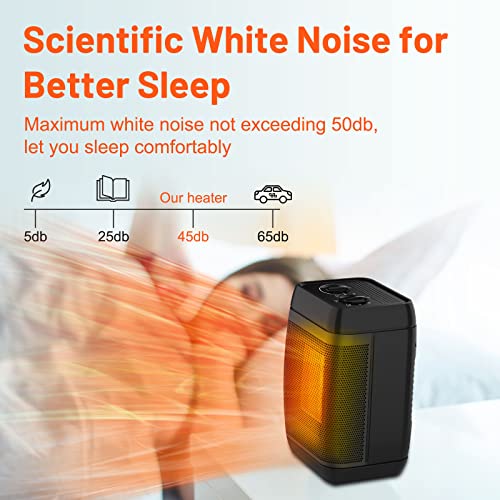 【Riscaldatore Elettrico Silenzioso】 Il termoventilatore ceramico funziona in un ambiente a basso rumore, non supera i 45 dB, che è abbastanza silenzioso da essere utilizzato quando si dorme in camera da letto. Allo stesso tempo, il mini riscaldatore per scrivania può anche riscaldare lo spazio senza interruzioni quando studi, leggi, lavori e guardi film ecc.