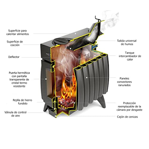 Stufa a legna per riscaldamento e cottura.