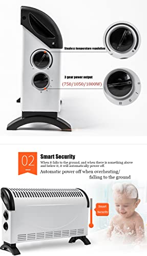 【Funzioni e caratteristiche】 Il riscaldatore a convezione trasferisce l'energia termica mediante trascinamento termico con elevata sicurezza. L'aria riscaldata sale, più grande è l'area, più calore viene dissipato.