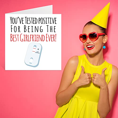 Stuff4 Biglietti di compleanno divertenti per fidanzata, con scritta in lingua inglese Positive Best Girlfriend Ever, biglietto di auguri di compleanno per fidanzata, 145 mm x 145 mm