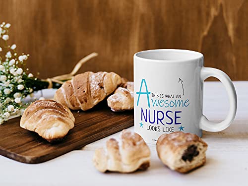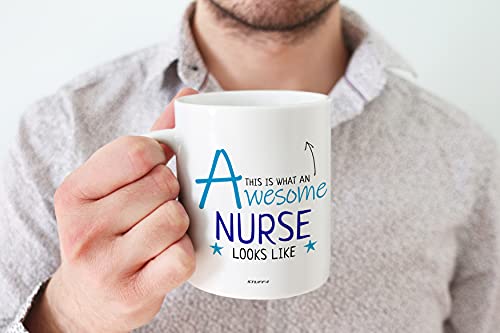 Stuff4 This is What an Awesome Nurse Looks Like Tazza con scritta blu 311,8 g, in ceramica, lavabile in lavastoviglie, regalo per infermieri, infermieri, regali per studenti infermieri