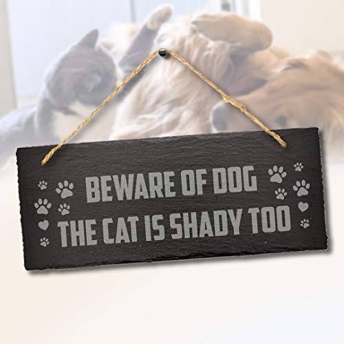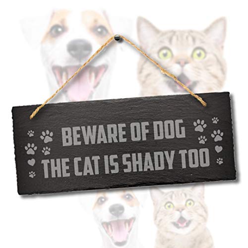 Stukk Cuccia divertente da appendere al laser per gattini, cuccioli di cane (Beware of Dogs D1), targa in pietra ardesia incisa naturale, 30 x 12 cm (grande)