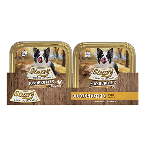 Stuzzy, Monoprotein Grain & Gluten Free, Cibo Umido per Cani Adulti al Gusto Pollo Preparato in Patè - Totale 3,2Kg (32 Vaschette da 100G)