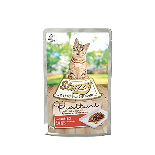 I Piattini Stuzzy: bocconcini di carne (agnello, pollo, manzo) in salsa selezionati sono un alimento completo ideale per gatti adulti sterilizzati