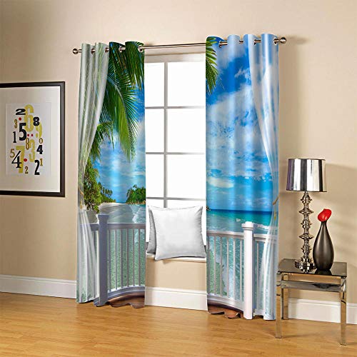 STWSXQ Tenda Oscurante Camera Da Letto Bambini Tende Finestre Soggiorno Moderne 2 Pezzi Stampa 3D Balcone Con Vista Mare Motivo Tende Oscuranti Termiche Isolanti Con Occhielli 117X230Cm