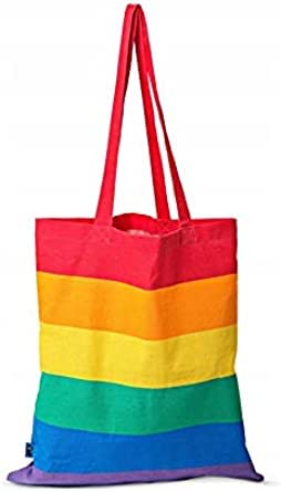 Borsa capiente e resistente in cotone ripiegabile e riutilizzabile con decoro Arcobaleno Flag per la spesa e per ogni occasione informale