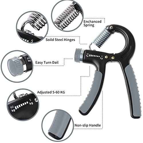 KMT STYLE Hand Grip,avambracci Attrezzi, Pinza Mano Contatore, 5-60kg /11lb-132lb Attrezzi Per Allenamento Di Mani- Pinza Antistress Adulti, Gripper Mano Per La Palestra E L'allenamento A Casa Quotidiano (GRIGIO)