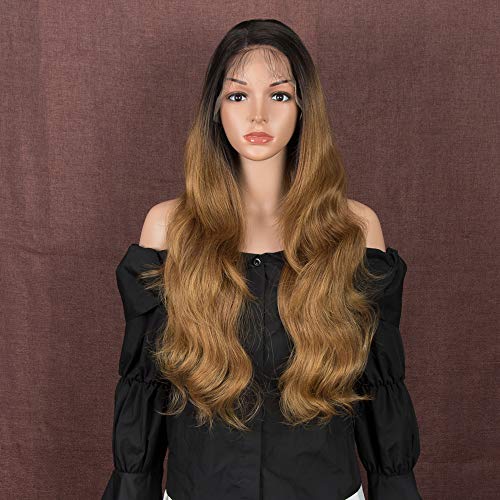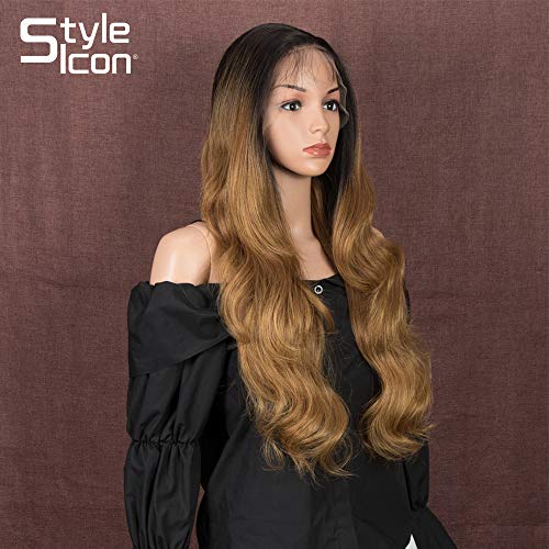 Style Icon - Parrucca da donna, in fibra sintetica resistente al calore, 66 cm, con lace front da 10 x 10 cm, cuoio capelluto simulato, con capelli mossi biondi, riga libera