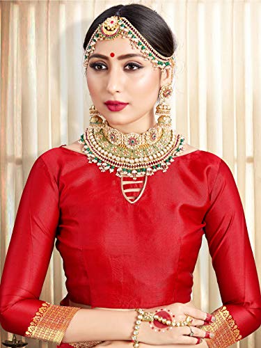 STYLE INSTANT Sarees per donna Banarasi Art Sari tessuto di seta - indiano Diwali regalo etnico Festival Sari & Camicetta senza cuciture, Rosso, Etichettalia unica