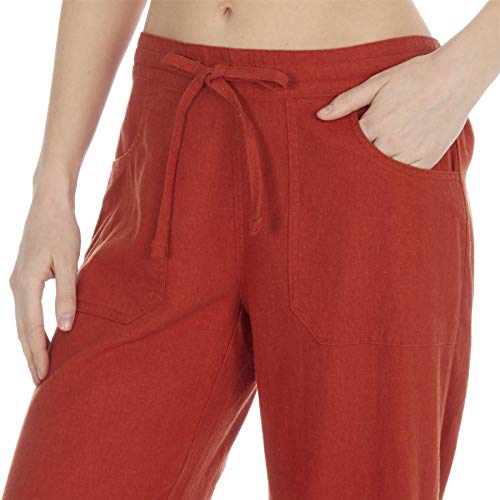 Style It Up - Pantaloni da donna, in lino, a 3/4, estivi, casual, vacanze, spiaggia, chino cargo Khaki/ruggine - 2 paia 44