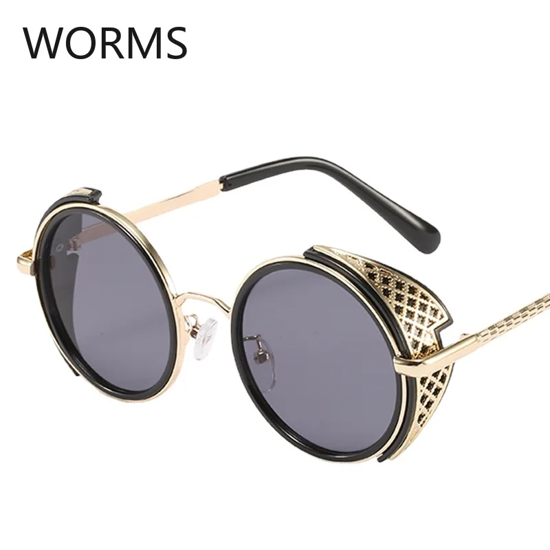 New style of Steampunk windproof sunglasses, round colorful pieces, sunglasses, men's and women's common grain leg Sunglasses
