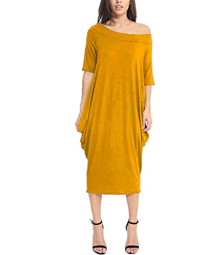 Style Wise Fashion Ladies Plain Off Spalla Baggy Midi Dress Donne Oversize Pocket Parachute Dress Senape 52-54