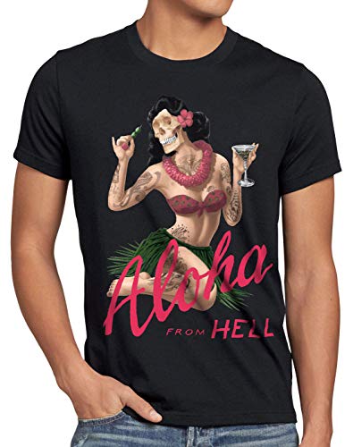 Style3 Aloha from Hell T-Shirt da Uomo Tatuaggio Hawaii Surfer USA, Dimensione:3XL, Colore:Nero