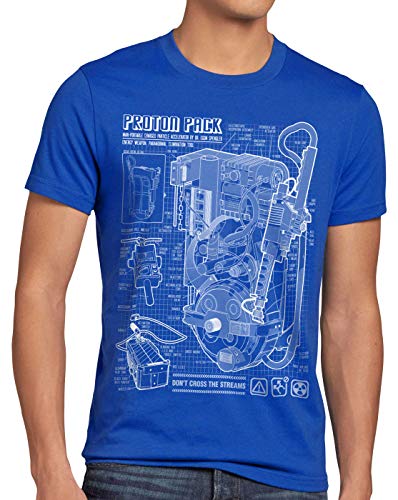 Style3 Zaino Protonico Cianografia T-Shirt da Uomo Fantasma Proton Pack, Dimensione:L, Colore:Blu