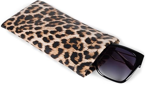 StyleBREAKER Astuccio per occhiali da sole con motivo leopardato e panno per la pulizia, custodia per occhiali con chiusura a scatto, unisex 09020096, colore:Marrone-Beige