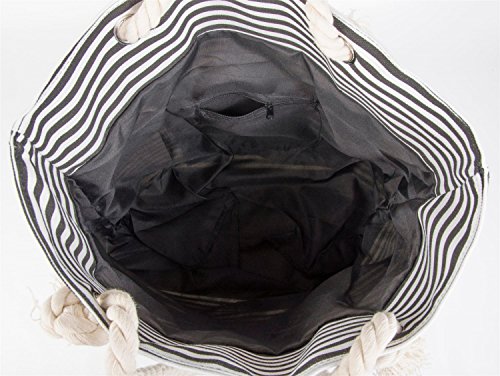 StyleBREAKER borsone da spiaggia a righe con stella, borsa scolastica, borsa per shopping, donna 02012037, colore:Nero-Bianco/Verde
