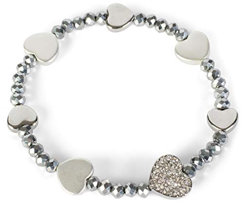 StyleBREAKER Bracciale con Perle di plastica da Donna con Charms a Cuore e Strass, Elastico, Gioielli 05040175, Colore:Argento