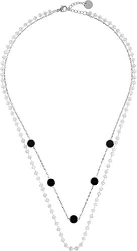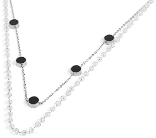 StyleBREAKER Collana a Strati per Signore in Acciaio Inox 2 File con Perline e Pendenti in plastica, Catena di Ancoraggio, Catena, Gioielli 05030067, Colore:Argento/Trasparente