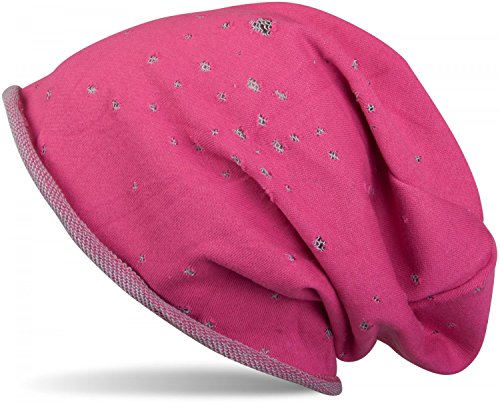 StyleBREAKER Cuffia Beanie con Fori Vintage e Orlo Arrotolabile, Unisex 04024052, Colore:Rosa-Grigio