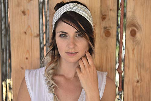 Fascia per capelli stile retro con motivo a quadri e dettaglio con nodo a torsione sul davanti, utilizzabile come copricapo o adatta per lo sport