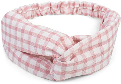 StyleBREAKER Fascia per capelli da donna in fantasia quadri, elasticizzata e con un nodo a torsione, fascia per fronte, fascia per capelli, Pinup, Rockabilly 04026037, colore:Rosé-Bianco