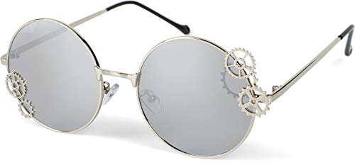 StyleBREAKER occhiali da sole da donna con applicazione di ingranaggi sulle lenti rotonde, montatura in metallo, look retrò 09020127, colore:Montatura Argento/Vetro Argento munito di specchi