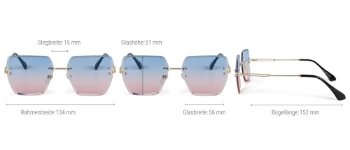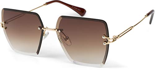 StyleBREAKER Occhiali da sole da donna senza montatura con lenti rettangolari colorate, montatura in metallo, taglio a diamante 09020124, colore:Montatura oro/vetro marrone sfumatura