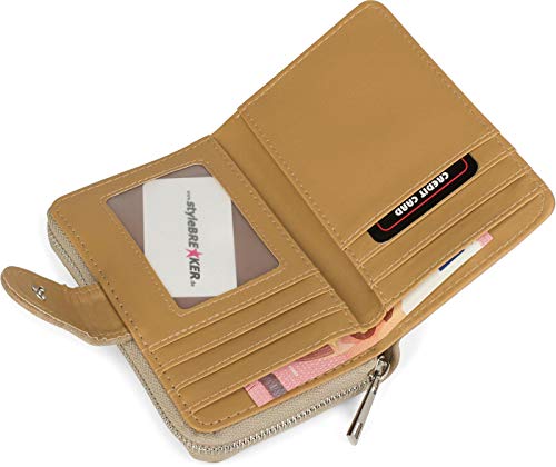 StyleBREAKER portafoglio con intaglio metallico a stella o paillettes, chiusura con cerniera, portamonete, donna 02040076, colore:Blu scuro/Argento metallizzato