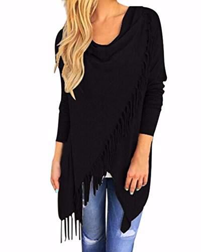 StyleDome Donna Maglione Maglia Camicetta Blusa Asimmetrica Casual Elegante Maniche Lunghe Nappe Ufficio Nero XL