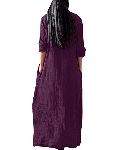 StyleDome Donna Vestito Maxi Etnico Tribale Mezza Maniche Casual Elegante Cotone Cocktail Ufficio Viola Scuro IT 56