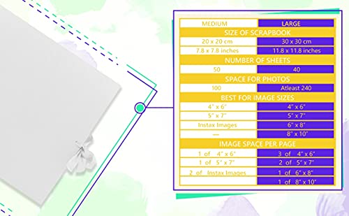 Spazio per diverse dimensioni di foto: L'album fotografico è composto da 40 fogli che offrono molto spazio per riporre le fotografie. Le carte per scrapbooking possono essere utilizzate per salvare immagini di una vasta gamma di formati come Instax (Mini, Square e Wide), 15,2 x 10,2 cm e 12,7 x 17,8 cm.
