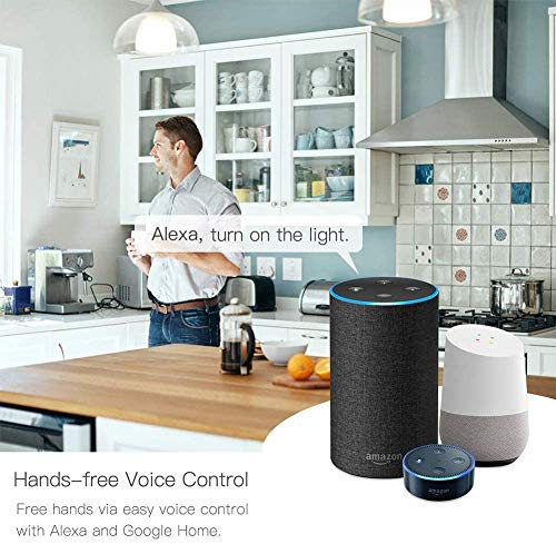 Controllo vocale: può essere utilizzato con Alexa e Google Home, invece di toccare il pulsante di commutazione ogni volta, potete facilmente accendere/spegnere gli elettrodomestici tramite comandi vocali senza hub. È molto pratico creare scene su Alexa o Google Home. Soprattutto quando le mani sono piene.