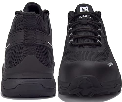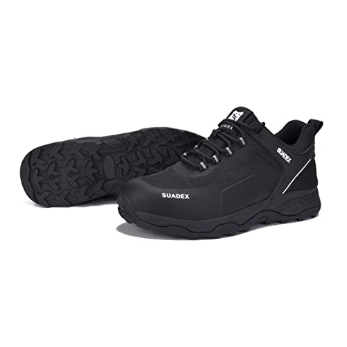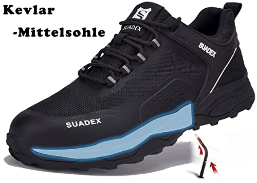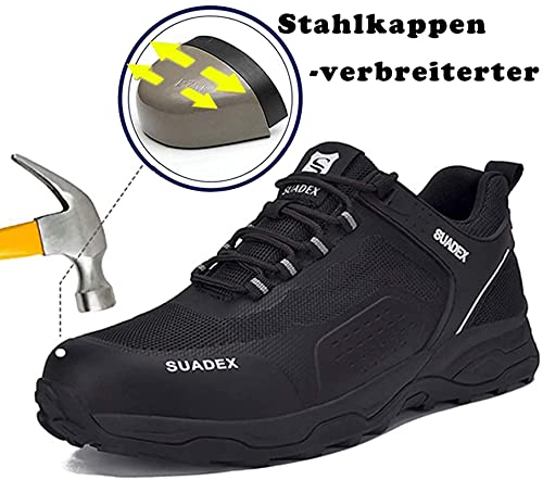 SUADEX Scarpe da Lavoro Uomo Donna Scarpe Antinfortunistiche Sportive Leggere Antiscivolo Traspiranti con Puntale in Acciaio, 02Nero 42 EU