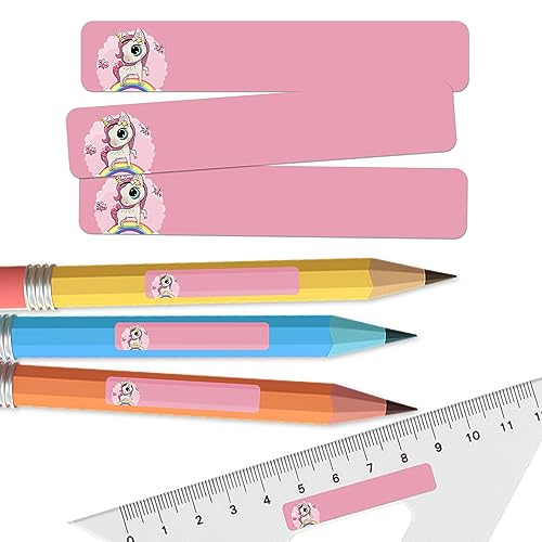✔️ 100 mini adesivi per targhette con unicorno, per bambini, che possono essere facilmente attaccati a penne o oggetti.