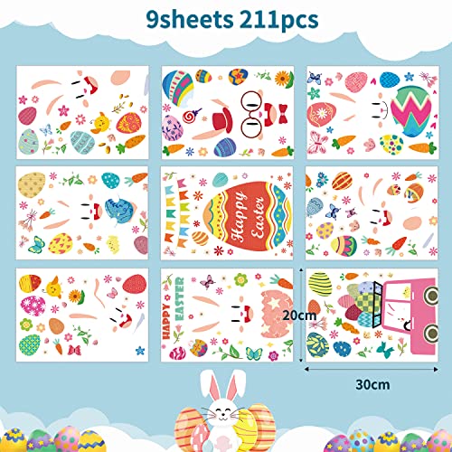 ☘【Adesivi per Finestre di Pasqua】9 adesivi per finestre di Pasqua con 211 modelli pasquali belli e carini, puoi creare le tue decorazioni pasquali fai-da-te secondo il tuo preferito, rendere la tua Pasqua indimenticabile!