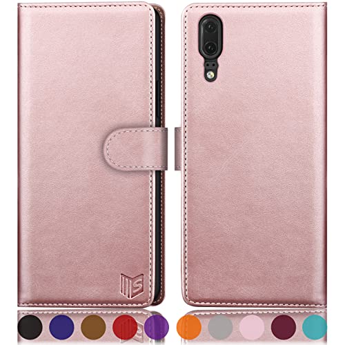 SUANPOT Cover per Huawei P20 Blocco RFID Portafoglio Slot CarteSupporto Cellulare Magnetica custodia Pelle Sintetica Cover per Huawei P20 Oro Rosa